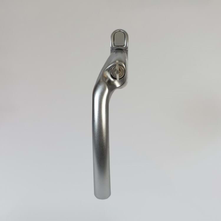 Aflåseligt terrassedørsgreb i mat aluminium.